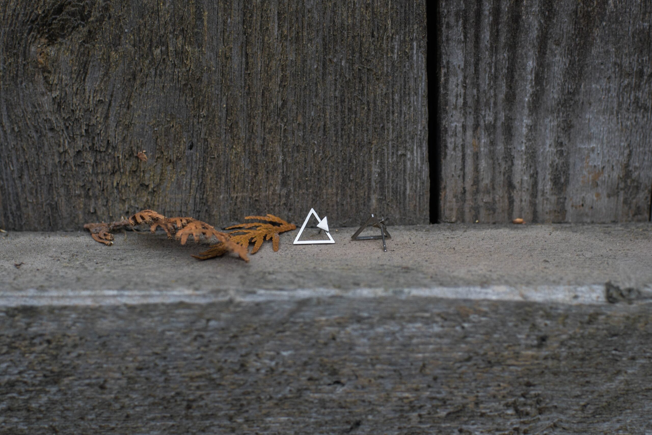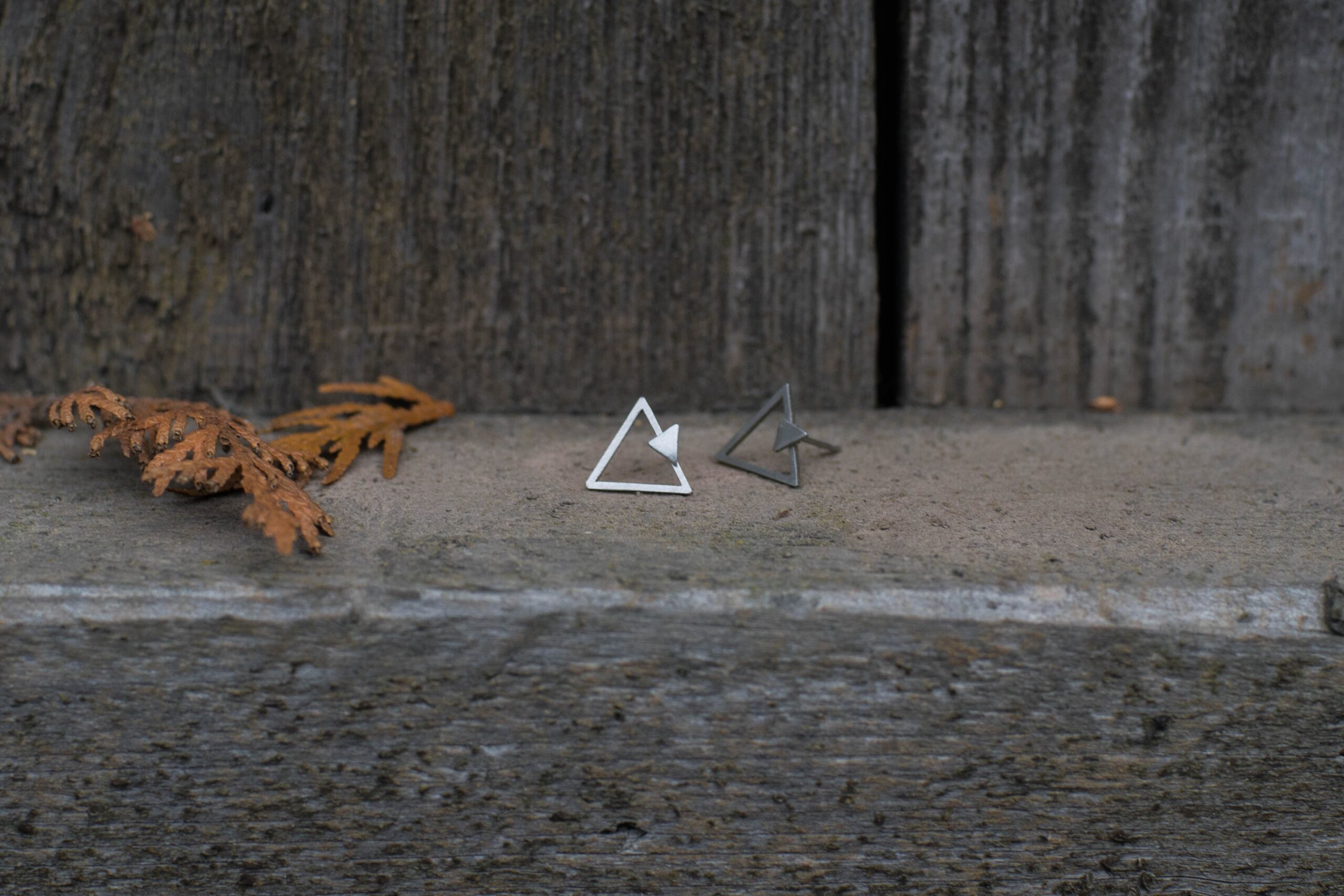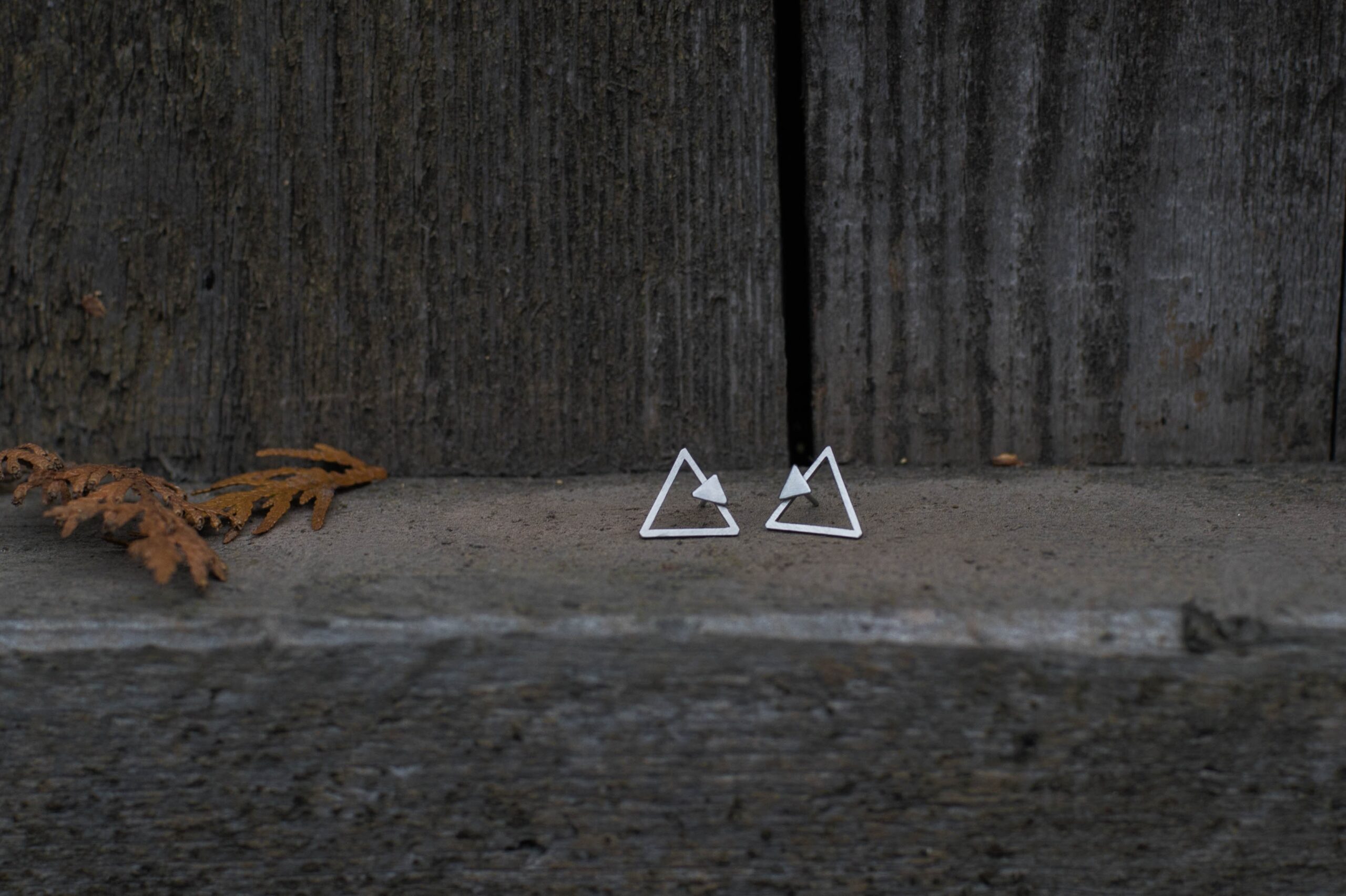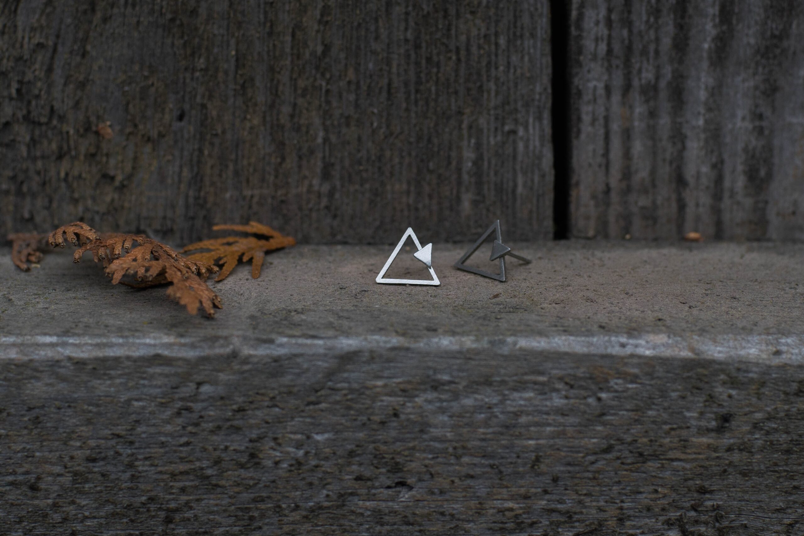 Náušnice jsou vyrobené z nerezové oceli, jejich rozměr je 11 x 11 mm. Nerezová ocel je materiál, který se vyznačuje hlavně svou pevností, stálostí a houževnatostí. Její hlavní výhoda však je, že se jedná o antialergenní materiál, takže se nemusíte bát alergických reakcí. Náušnice se dají nosit třemi způsoby. Obě části mohou být vepředu, menší trojúhelník může být vepředu a větší vzadu za uchem a nebo lze nosit jen malý trojúhelník samostatně. Náušnice jsou doplněny nerezovými zarážkami.