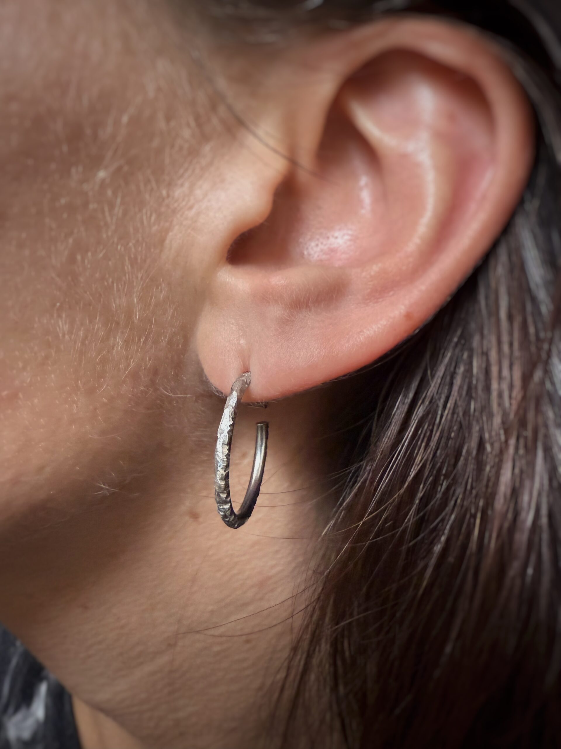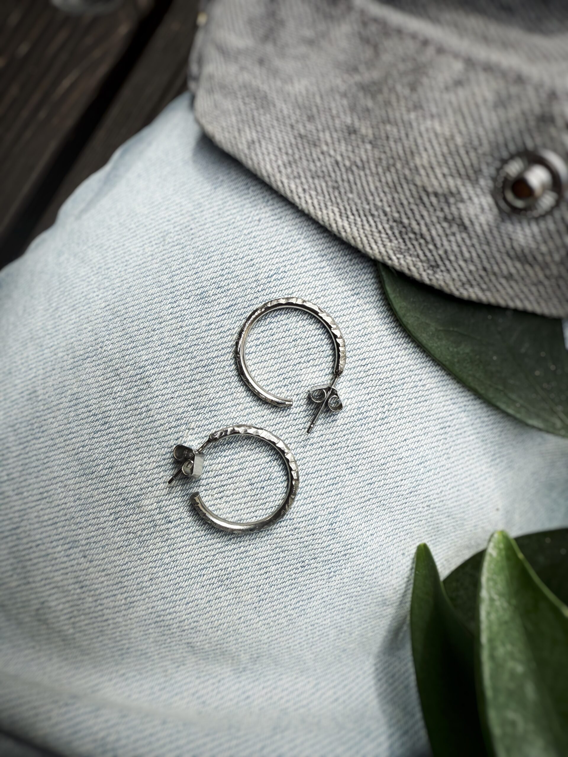 Náušnice jsou vyrobené z nerezové oceli, na povrchu probrušované. Jejich průměr je 20 mm. Nerezová ocel je materiál, který se vyznačuje hlavně svou pevností, stálostí a houževnatostí. Její hlavní výhoda však je, že se jedná o antialergenní materiál, takže se nemusíte bát alergických reakcí. Náušnice jsou doplněny nerezovými zarážkami.