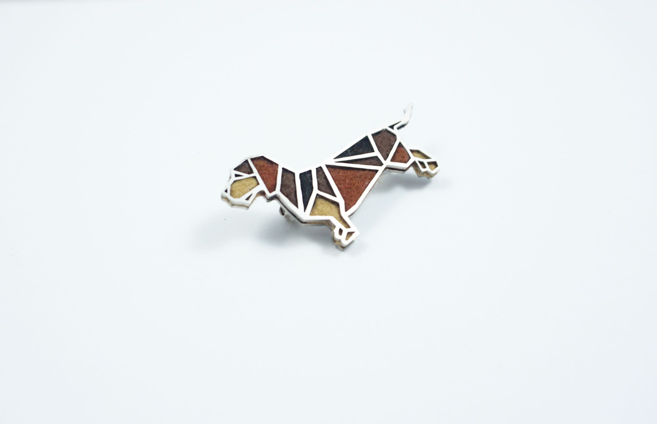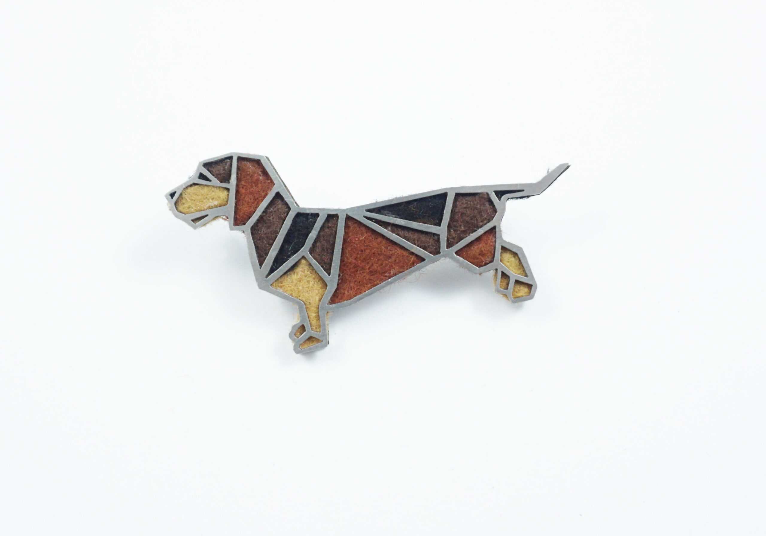 Brož je vyrobena z broušeného nerezu a filcu, o velikosti 58 x 33 mm, tloušťce 3 mm. Barevnost filcu je možná na přání.