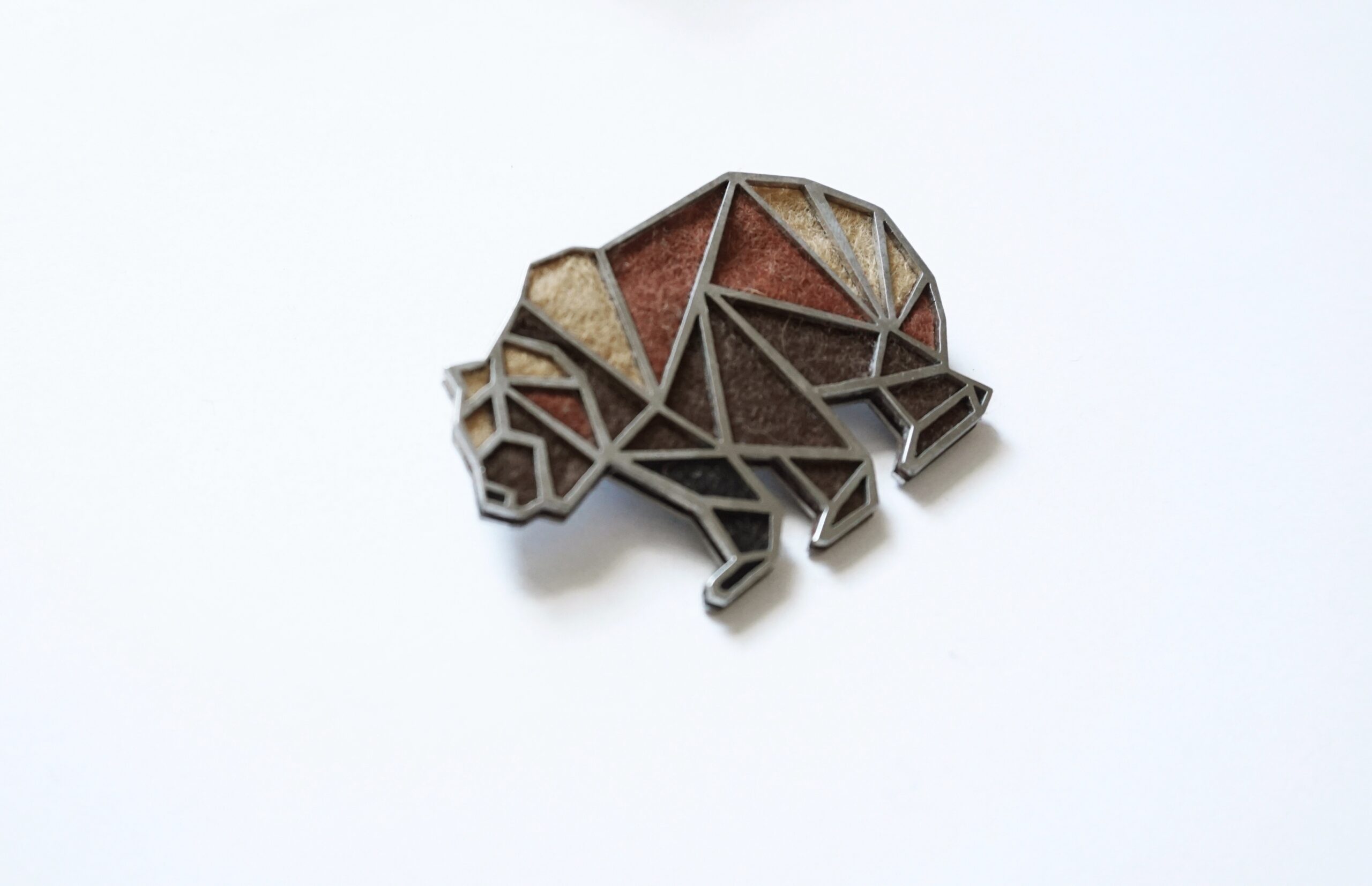 Brož je vyrobena z broušeného nerezu a filcu. Velikost 65 x 45 mm, tloušťka 3 mm. Barevnou kombinaci je možné vyrobit na přání.