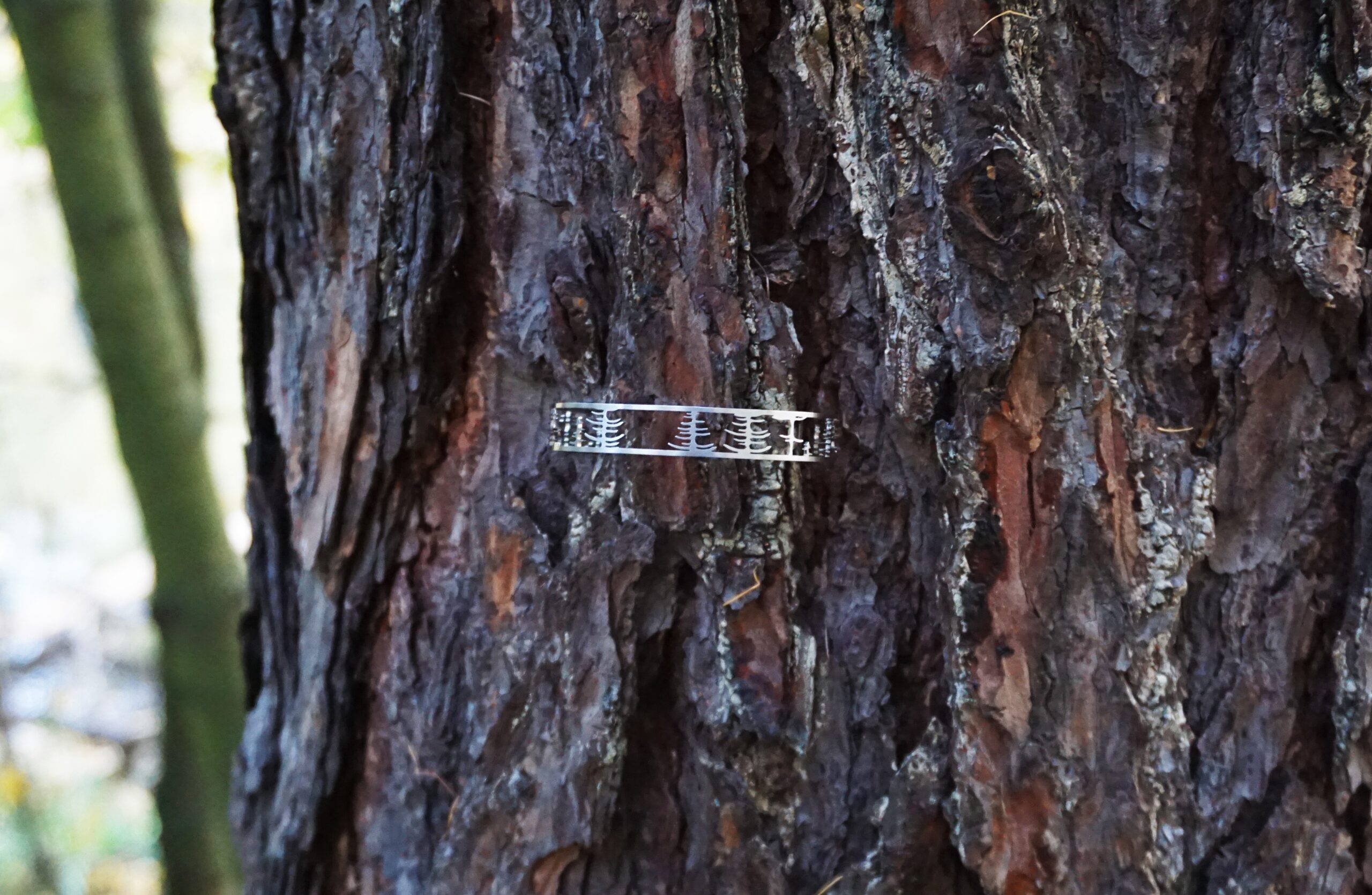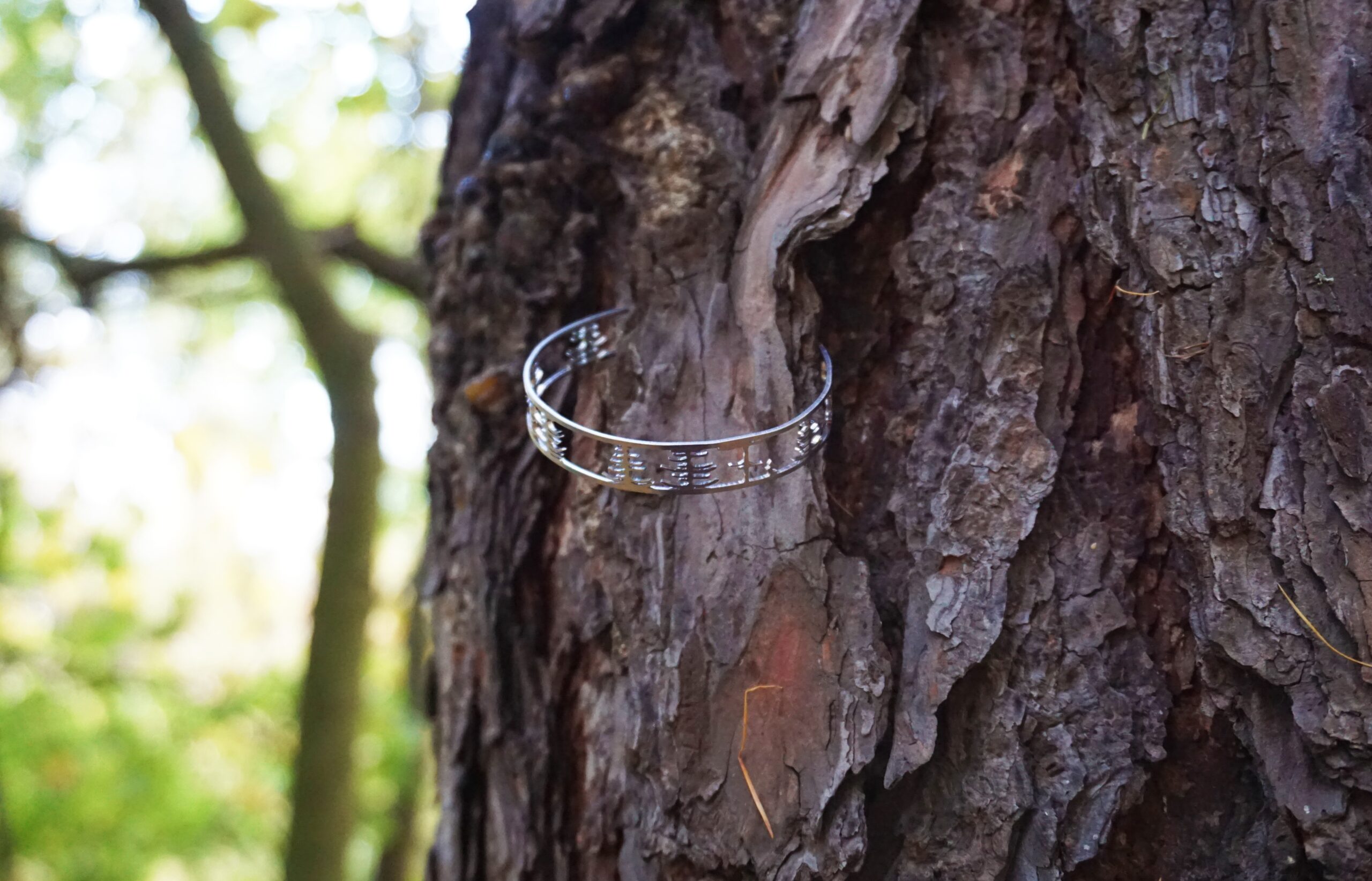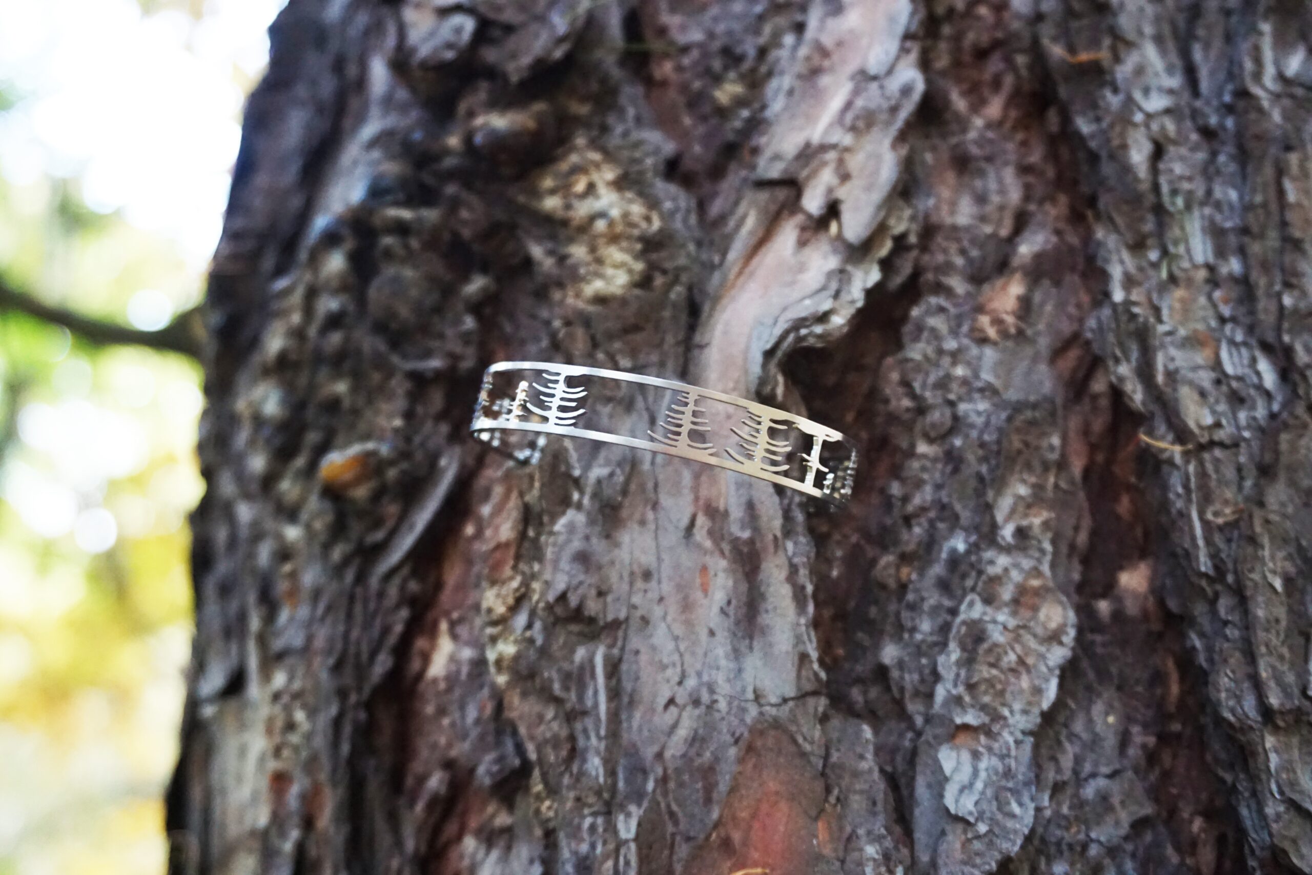 Náramek je vyrobený z broušené nerezové oceli. Nerezová ocel je materiál, který se vyznačuje hlavně svou pevností, stálostí a houževnatostí. Její hlavní výhoda však je, že se jedná o antialergenní materiál, takže se nemusíte bát alergických reakcí. Šířka 10 mm, průměr 60 mm. Je součástí kolekce les, kde jsou řetízky, brož a náušnice se stejným motivem.