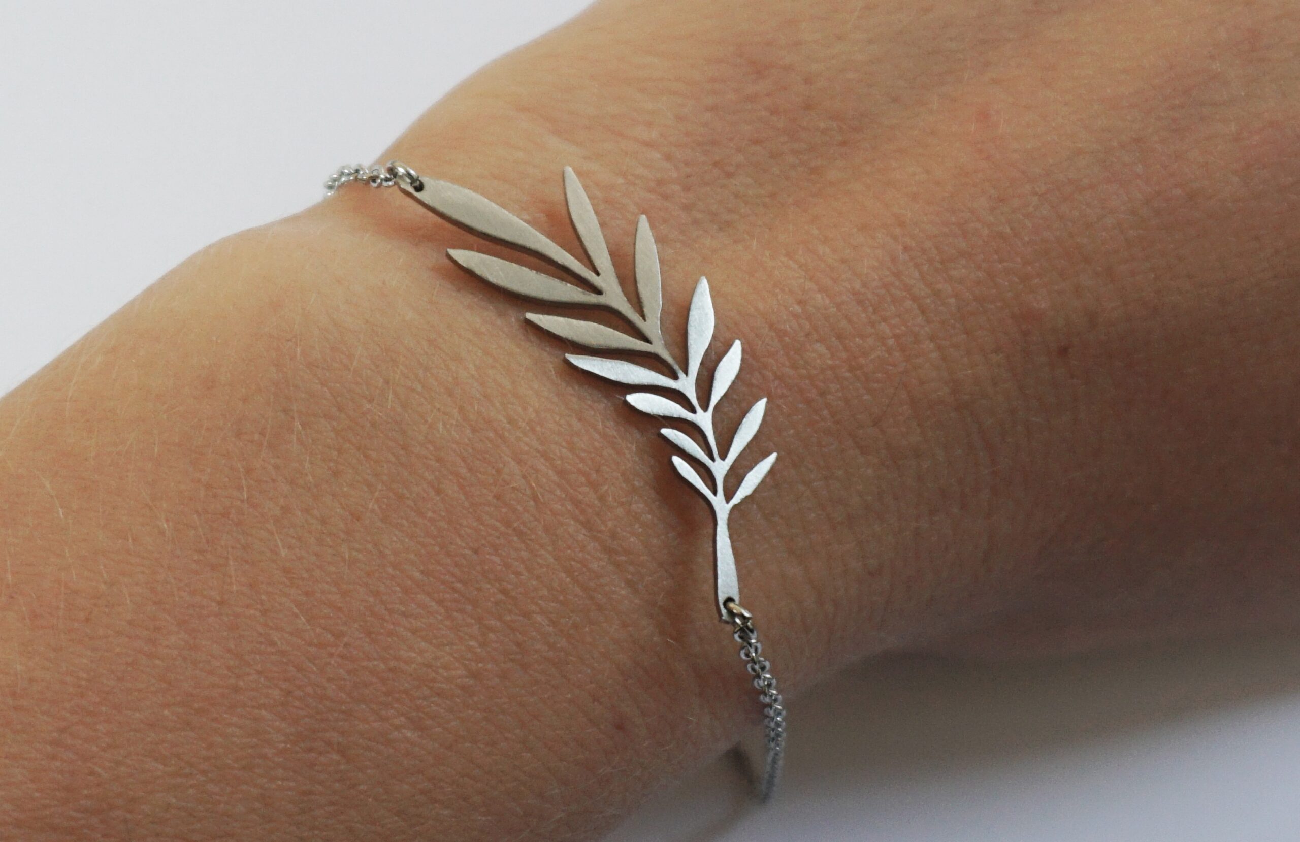 Náramek z nerezu, ve tvaru palmy s přívěškem o velikosti 50 x 12 mm. Nerezová ocel je materiál, který se vyznačuje hlavně svou pevností, stálostí a houževnatostí. Její hlavní výhoda však je, že se jedná o antialergenní materiál, takže se nemusíte bát alergických reakcí. Délka náramku na přání. Zakončen pomocí klasického zapínání.