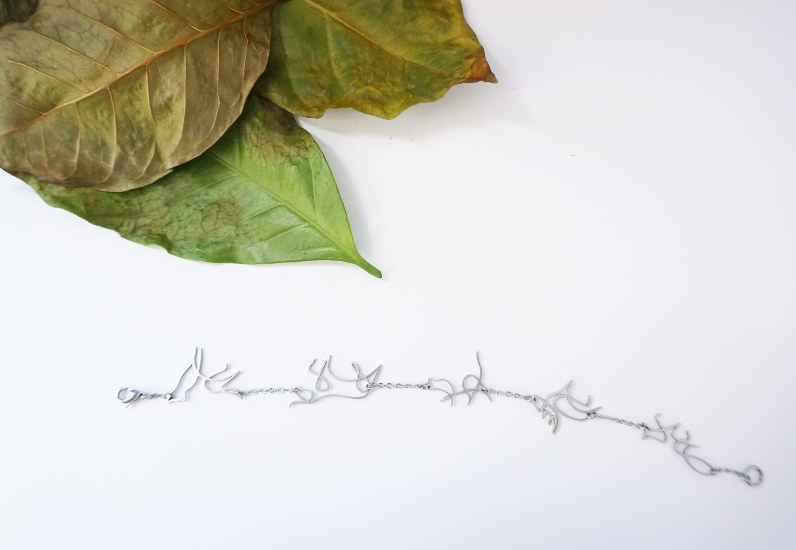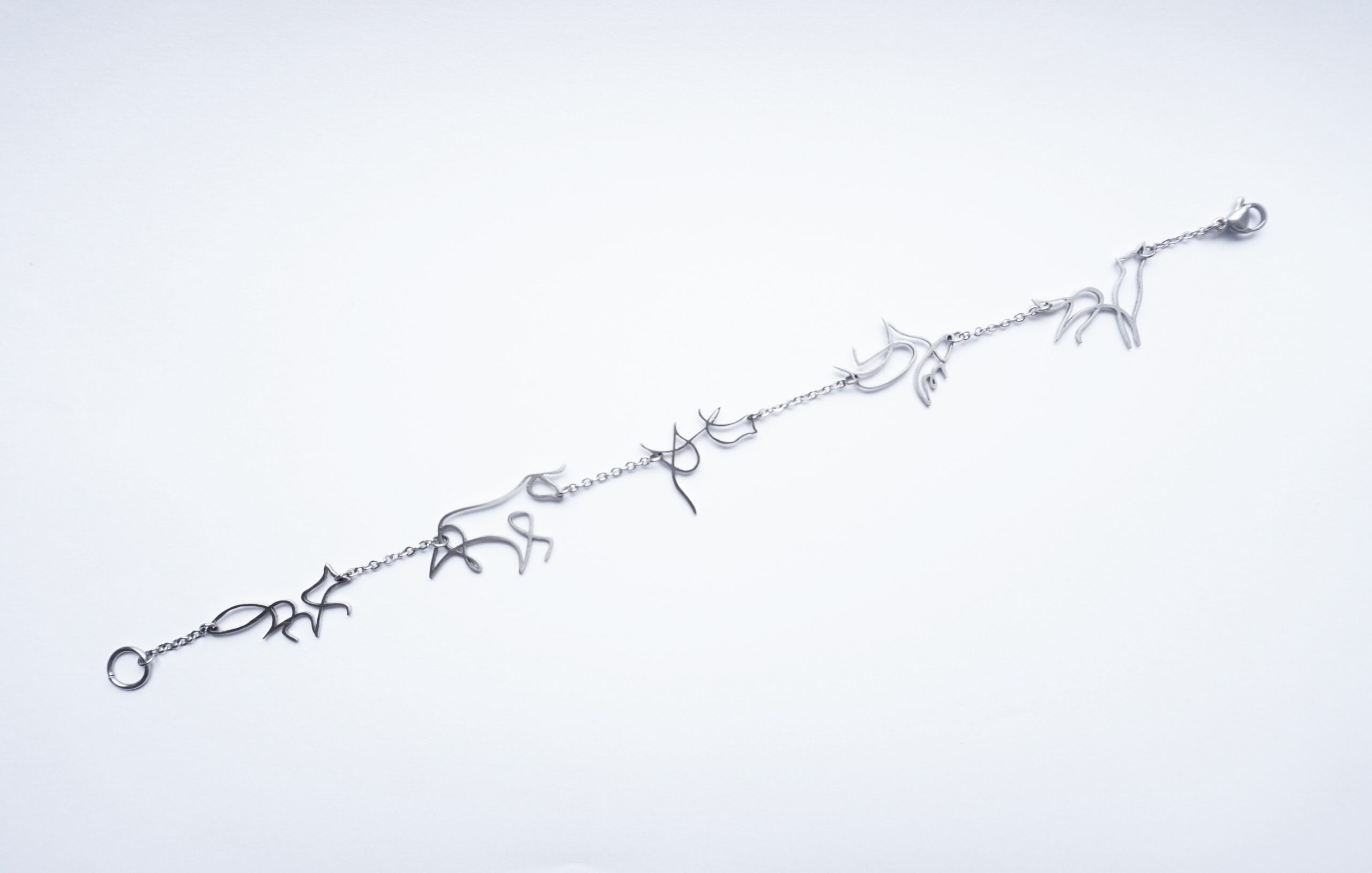 Náramek je vyrobený z nerezových zvířátek a řetízku. Délka cca 19,5 cm nebo na přání. Nerezová ocel je materiál, který se vyznačuje hlavně svou pevností, stálostí a houževnatostí. Její hlavní výhoda však je, že se jedná o antialergenní materiál, proto se nemusíte bát podráždění kůže nebo alergických reakcí.