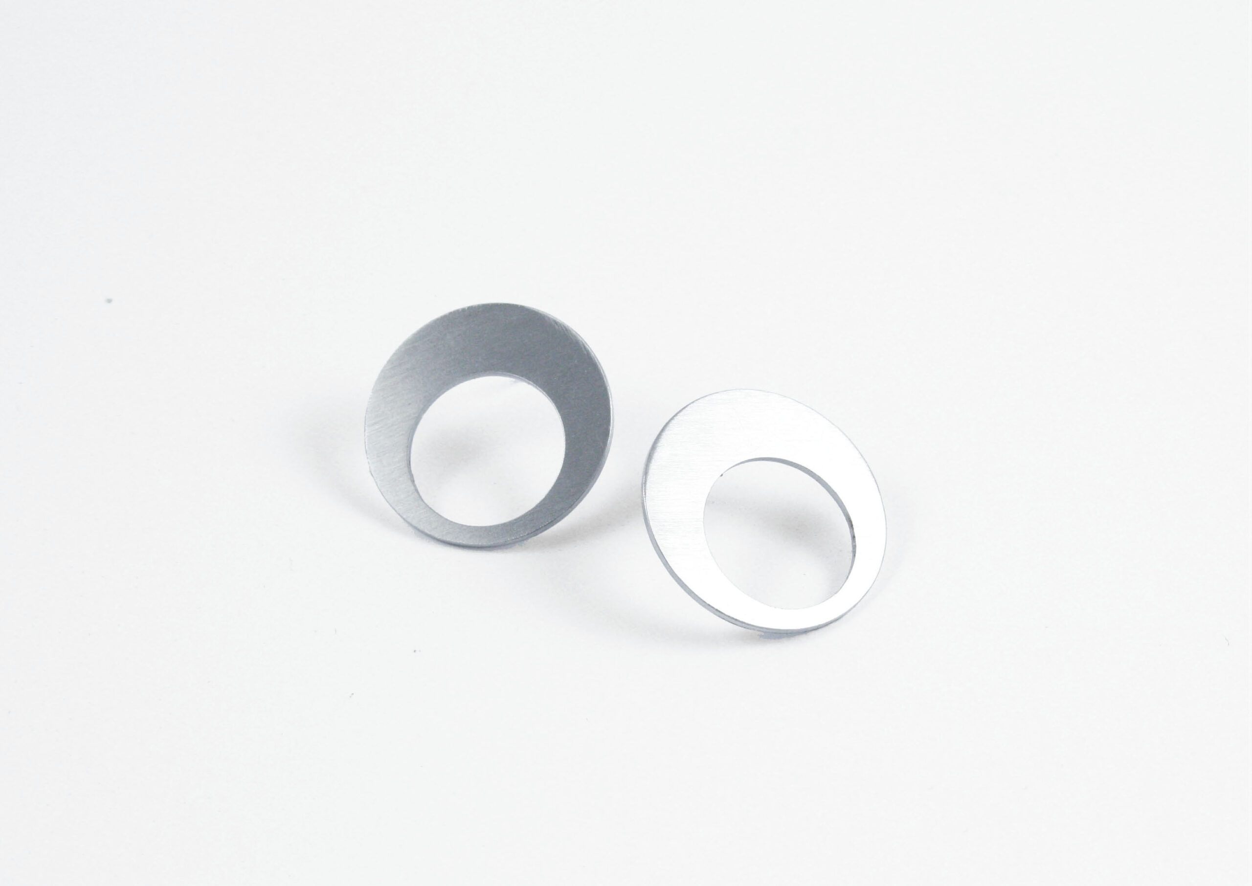 Náušnice jsou vyrobeny z broušeného nerezu. Nerezová ocel je materiál, který se vyznačuje hlavně svou pevností, stálostí a houževnatostí. Její hlavní výhoda však je, že se jedná o antialergenní materiál, takže se nemusíte bát alergických reakcí. Průměr 20 mm, tloušťka 1 mm. Doplněny kovovými zarážkami.