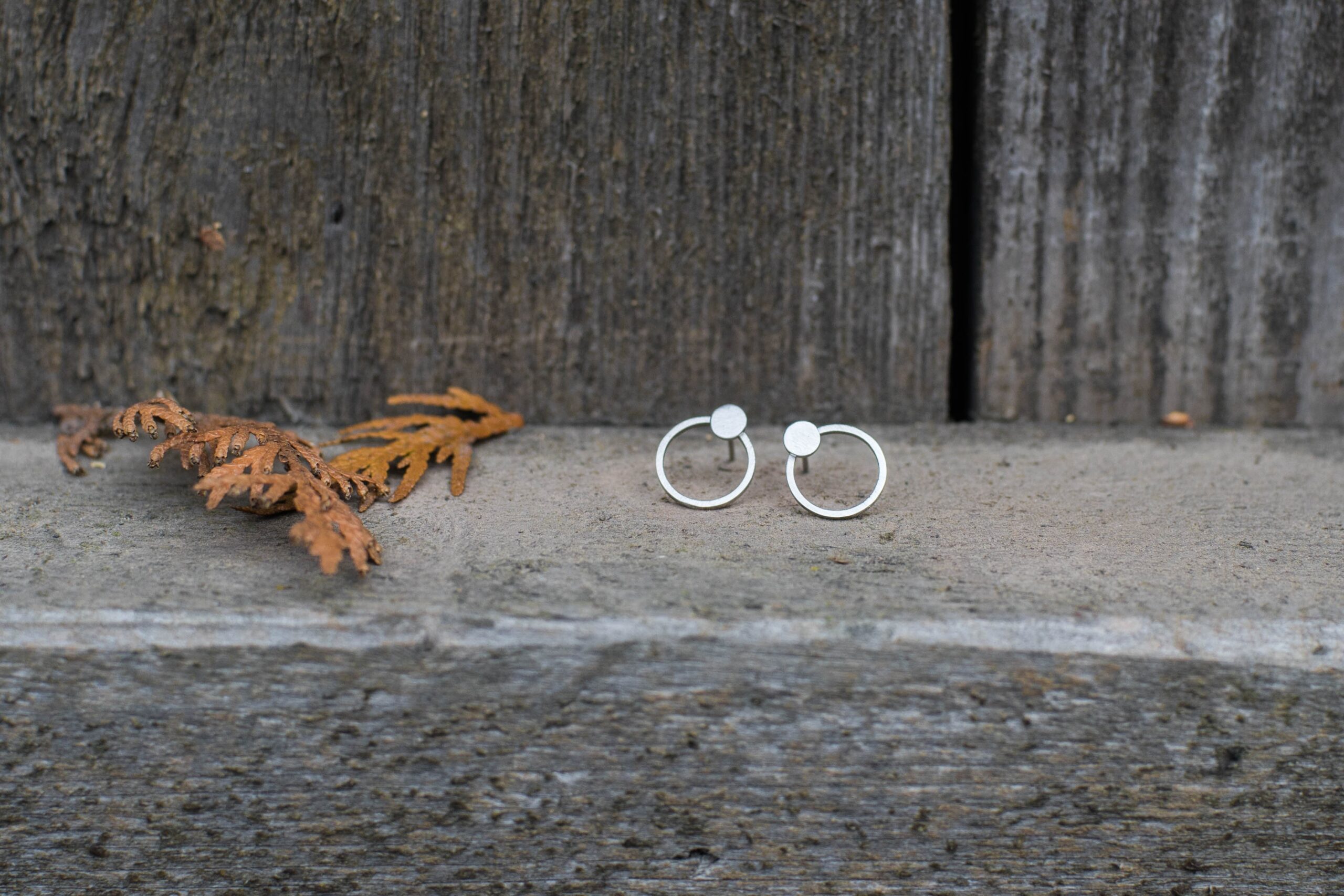 Náušnice jsou vyrobené z nerezové oceli, průměr je 11 mm. Nerezová ocel je materiál, který se vyznačuje hlavně svou pevností, stálostí a houževnatostí. Její hlavní výhoda však je, že se jedná o antialergenní materiál, takže se nemusíte bát alergických reakcí. Náušnice se dají nosit třemi způsoby. Obě části mohou být vepředu, menší puntík může být vepředu a kruh vzadu za uchem a nebo lze nosit jen malé kolečko samostatně. Doplněny nerezovými zarážkami.