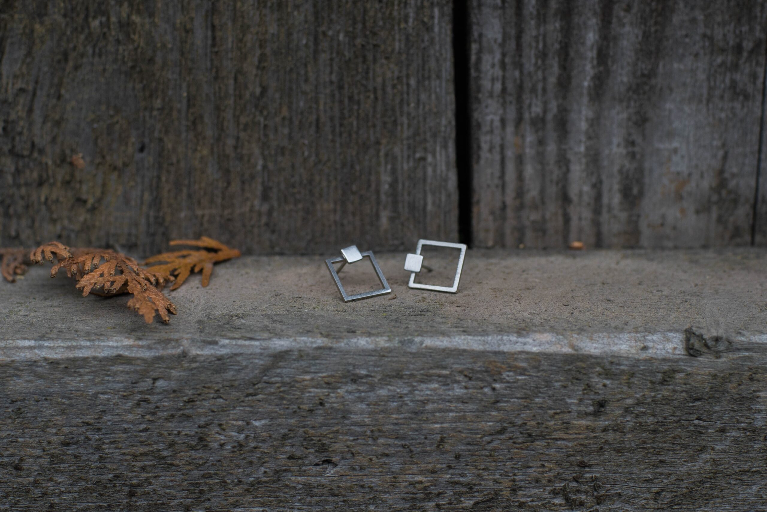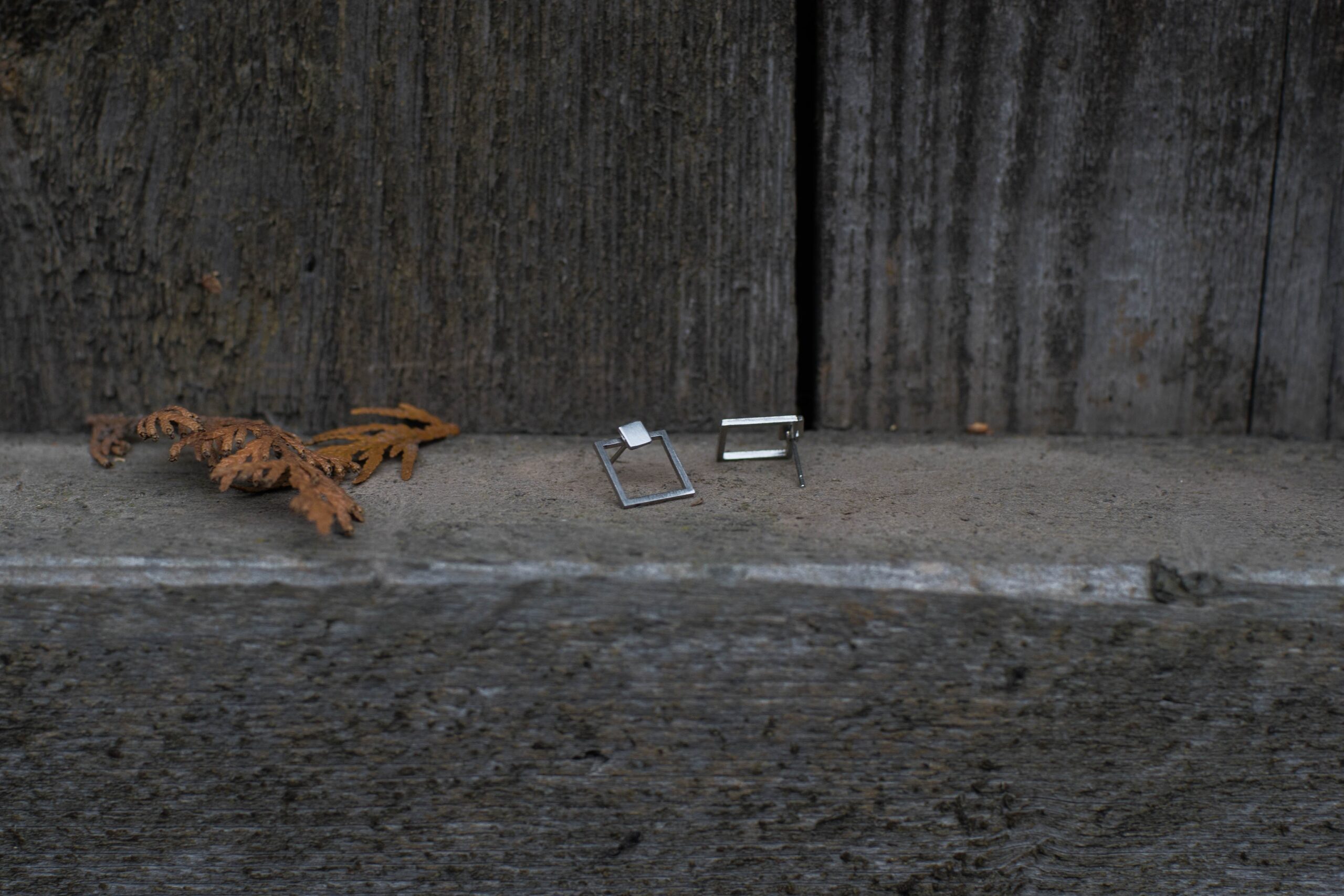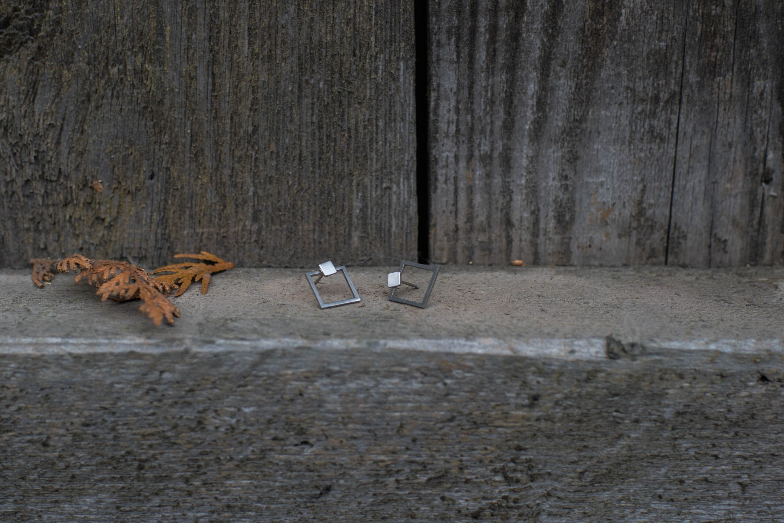 Náušnice jsou vyrobené z nerezové oceli, jejich rozměr je 11 mm x 11 mm. Nerezová ocel je materiál, který se vyznačuje hlavně svou pevností, stálostí a houževnatostí. Její hlavní výhoda však je, že se jedná o antialergenní materiál, takže se nemusíte bát alergických reakcí. Náušnice se dají nosit třemi způsoby. Obě části mohou být vepředu, menší čtvereček může být vepředu a větší vzadu za uchem a nebo lze nosit jen malý čtvereček samostatně. Náušnice jsou doplněny nerezovými zarážkami.