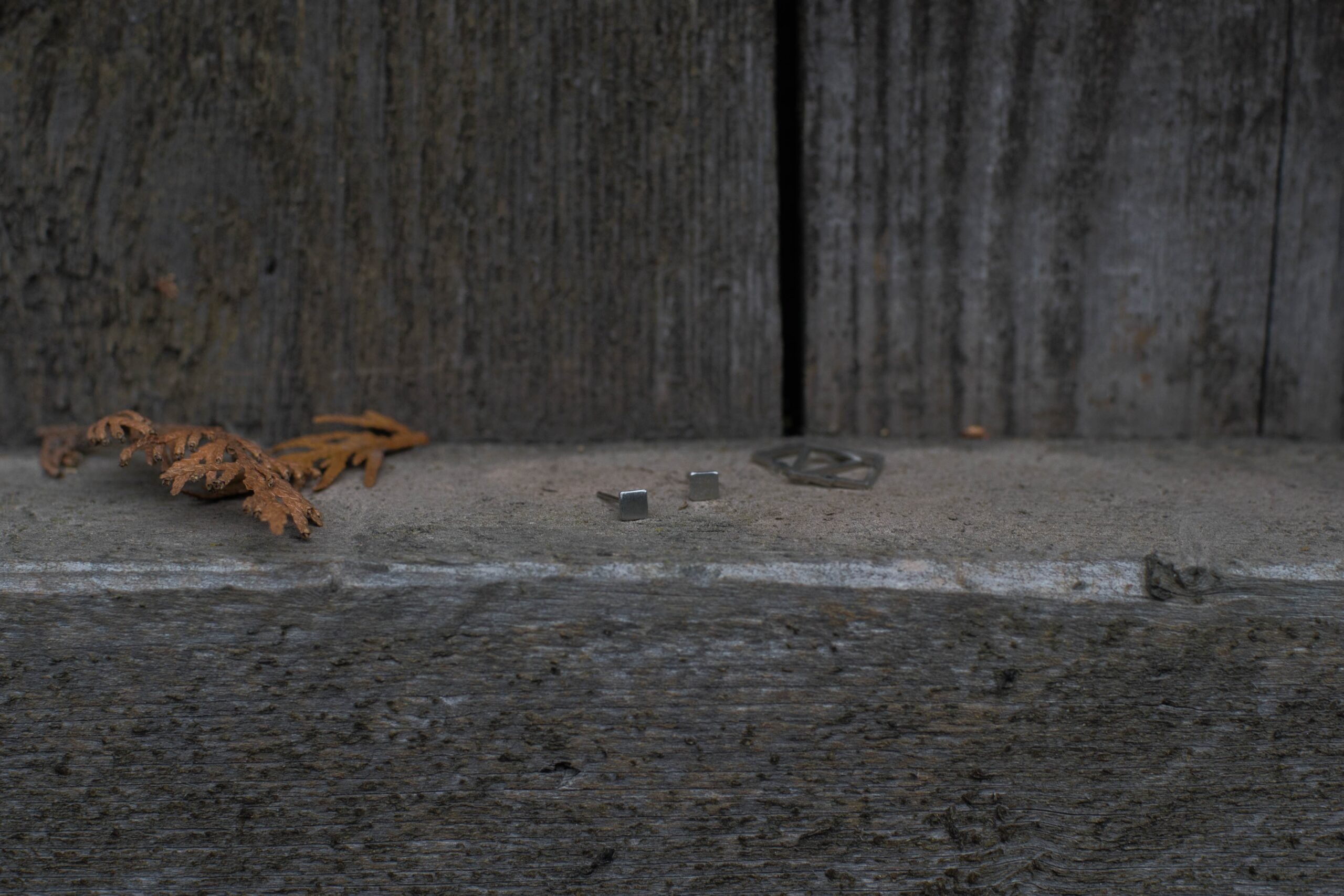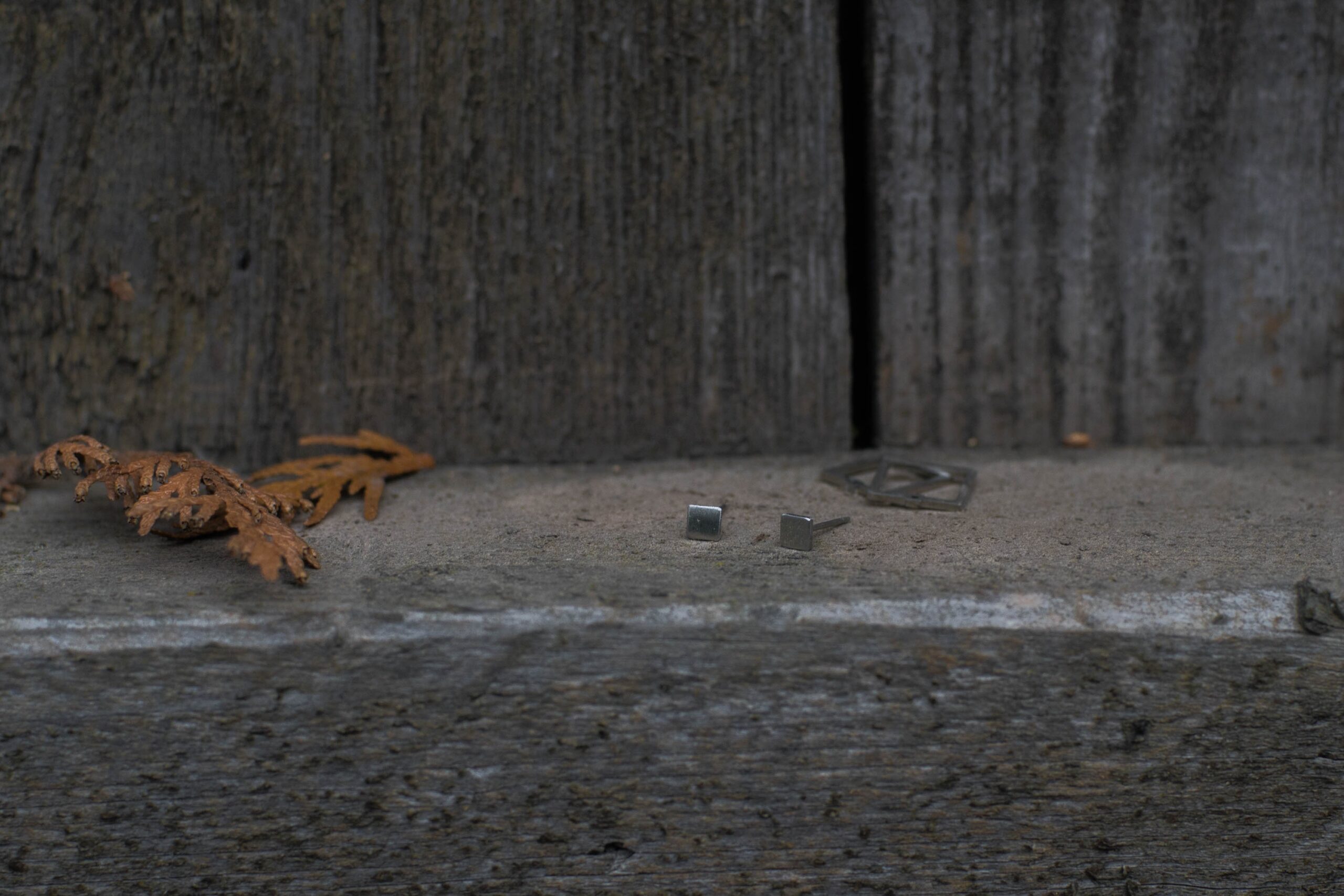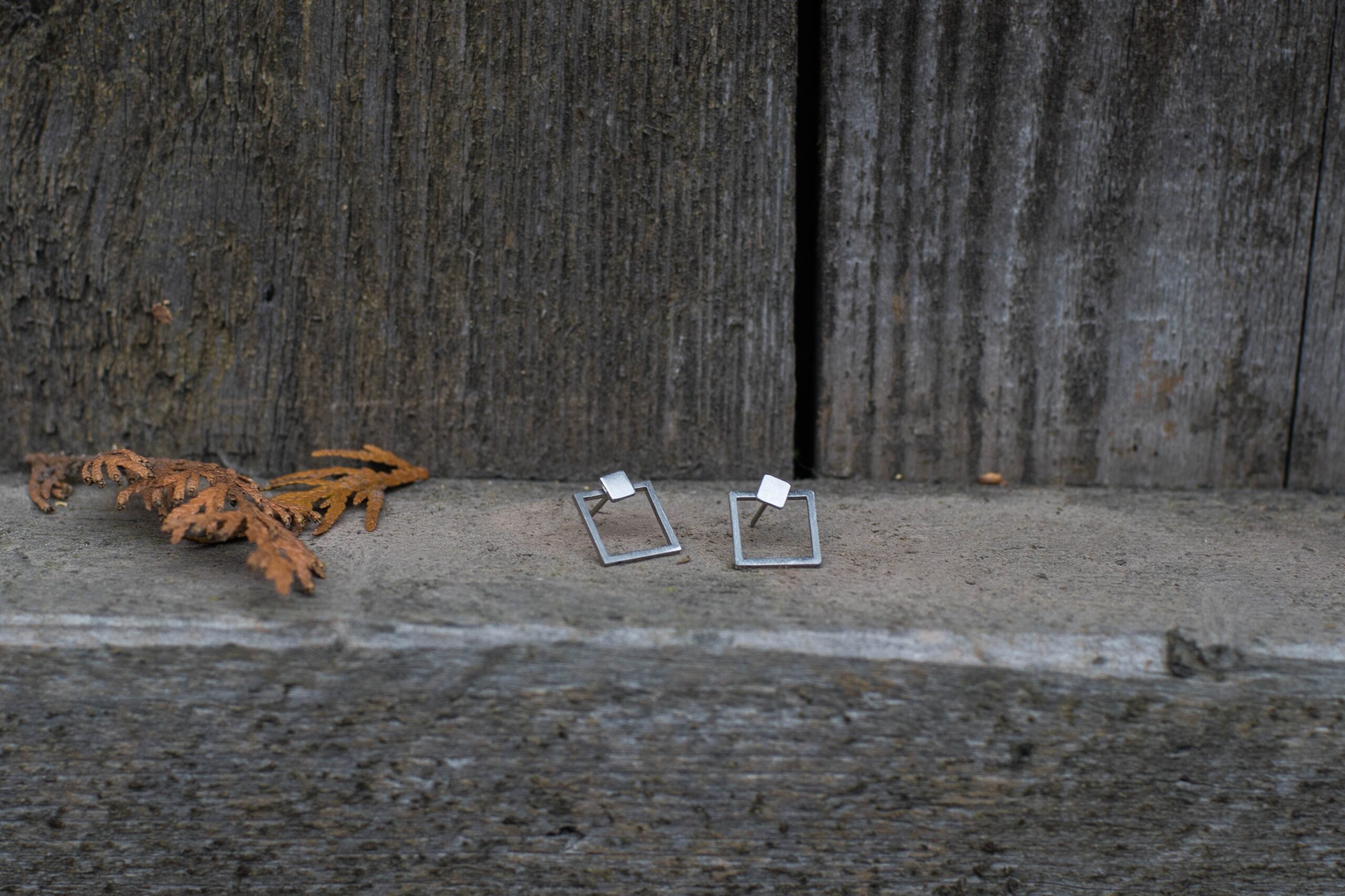 Náušnice jsou vyrobené z nerezové oceli, jejich rozměr je 11 mm x 11 mm. Nerezová ocel je materiál, který se vyznačuje hlavně svou pevností, stálostí a houževnatostí. Její hlavní výhoda však je, že se jedná o antialergenní materiál, takže se nemusíte bát alergických reakcí. Náušnice se dají nosit třemi způsoby. Obě části mohou být vepředu, menší čtvereček může být vepředu a větší vzadu za uchem a nebo lze nosit jen malý čtvereček samostatně. Náušnice jsou doplněny nerezovými zarážkami.