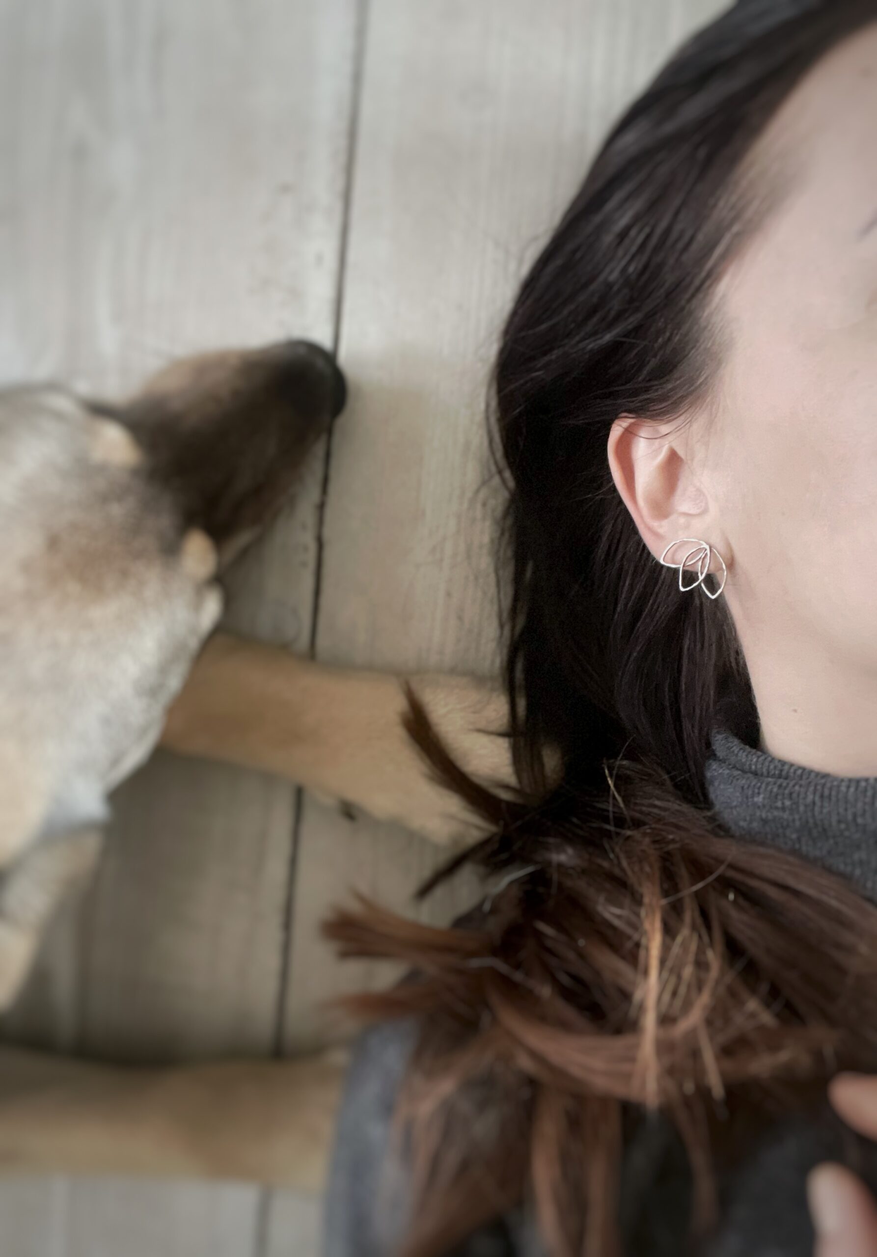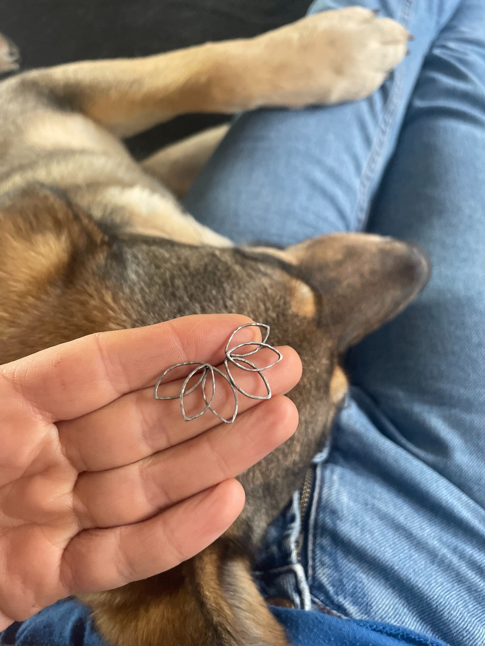 Náušnice ze tří probrušovaných lístků spojených dohromady.