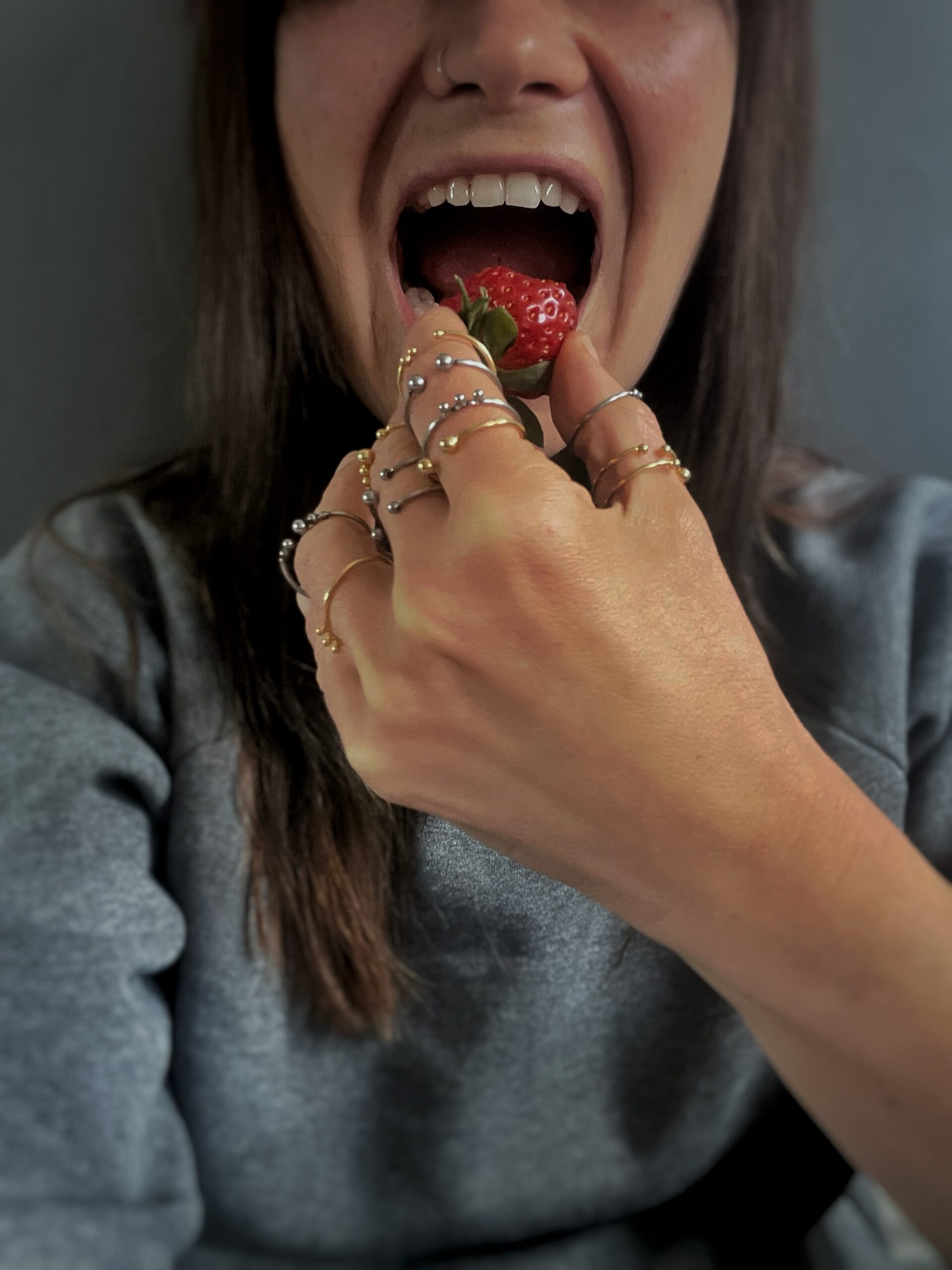 Prsten je vytvořený z nerezové oceli a tvořený drobnými kuličkami. Nerezová ocel je materiál, který se vyznačuje hlavně svou pevností, stálostí a houževnatostí. Její hlavní výhoda však je, že se jedná o antialergenní materiál, proto se nemusíte bát podráždění kůže nebo alergických reakcí. Velikost prstenu je možná na přání (stačí připsat do poznámky).