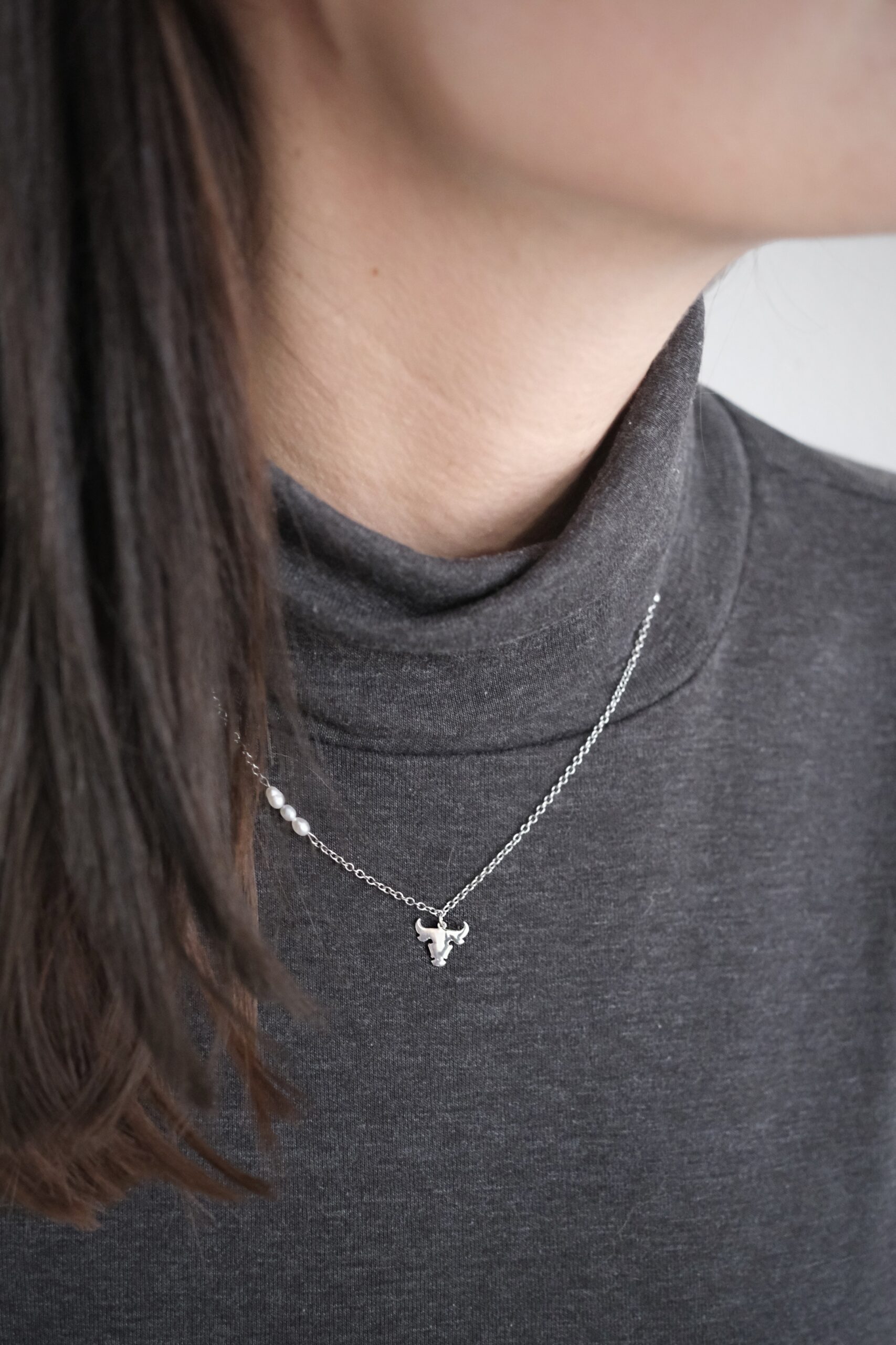 Řetízek býček je vyrobený z leštěné nerezové oceli a bílých přírodních perel. Celková délka řetízku je v rozmezí 42-44 cm, nebo na přání. Nerezová ocel je materiál, který se vyznačuje hlavně svou pevností, stálostí a houževnatostí. Její hlavní výhoda však je, že se jedná o antialergenní materiál, proto se nemusíte bát podráždění kůže nebo alergických reakcí.