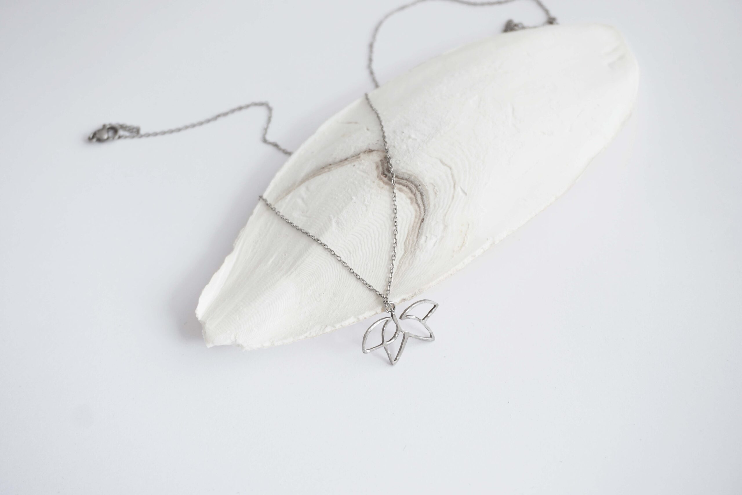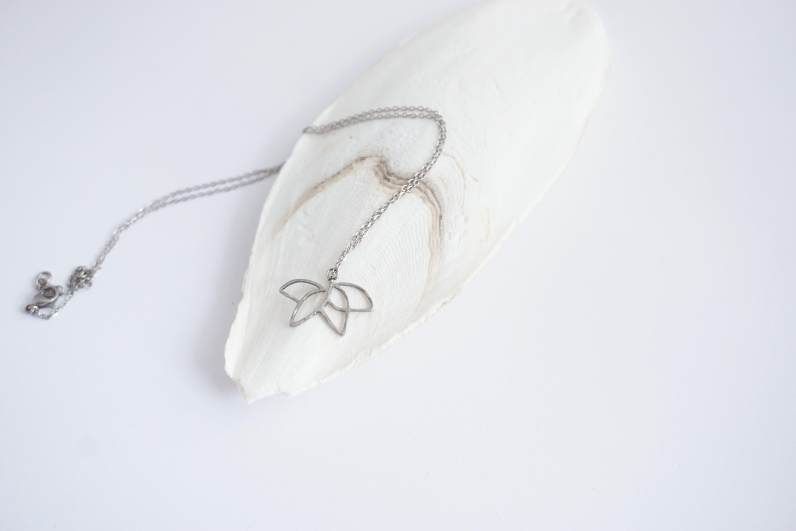 Řetízek leknín je vyrobený z nerezové oceli, s broušeným povrchem. Nerezová ocel je materiál, který se vyznačuje hlavně svou pevností, stálostí a houževnatostí. Její hlavní výhoda však je, že se jedná o antialergenní materiál, proto se nemusíte bát podráždění kůže nebo alergických reakcí. Velikost přívěšku je 25 x 12 mm. Celková délka řetízku je cca 40, 42, 44 cm (je zakončen několika kovovými očky).