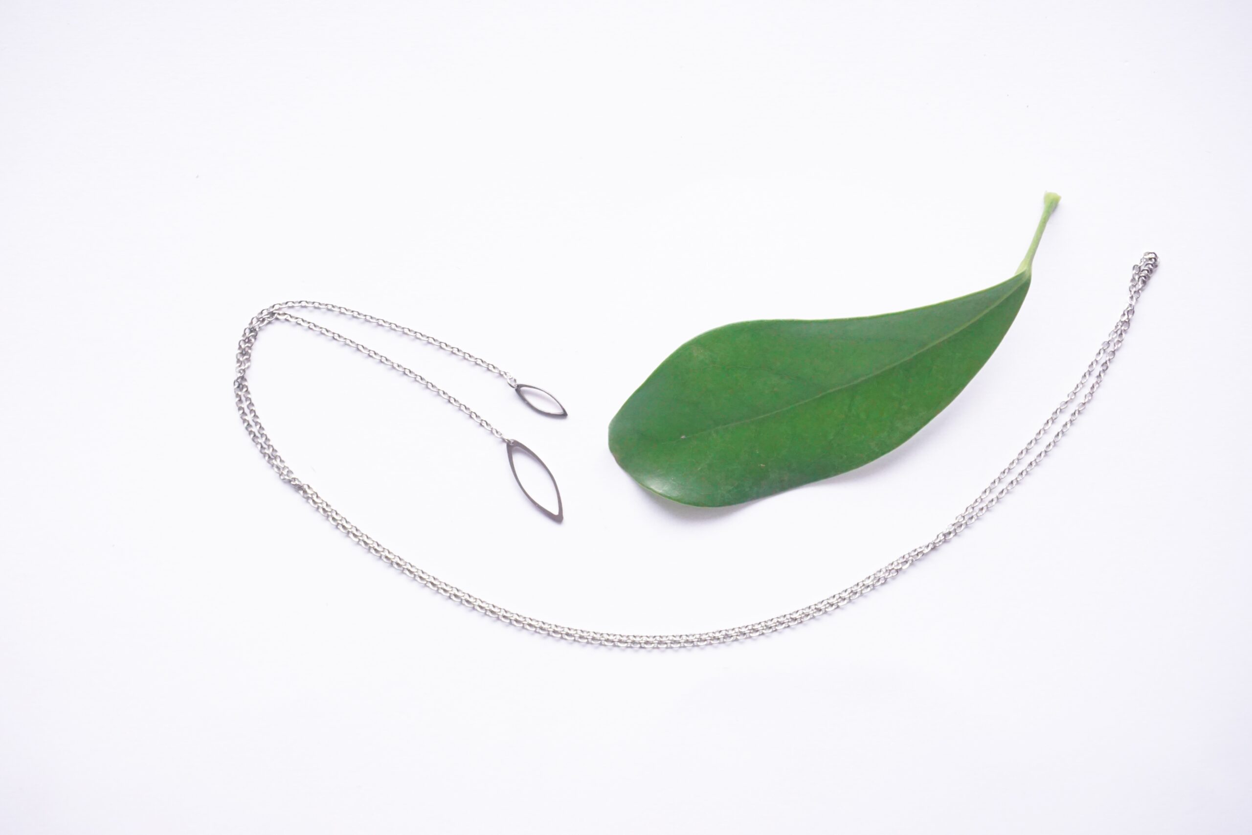 Řetízek je vyrobený z broušeného nerezu, celková délka je 61 cm. Řetízek funguje tak, že se provleče větší částí menší. Nerezová ocel je materiál, který se vyznačuje hlavně svou pevností, stálostí a houževnatostí. Její hlavní výhoda však je, že se jedná o antialergenní materiál, proto se nemusíte bát podráždění kůže nebo alergických reakcí.