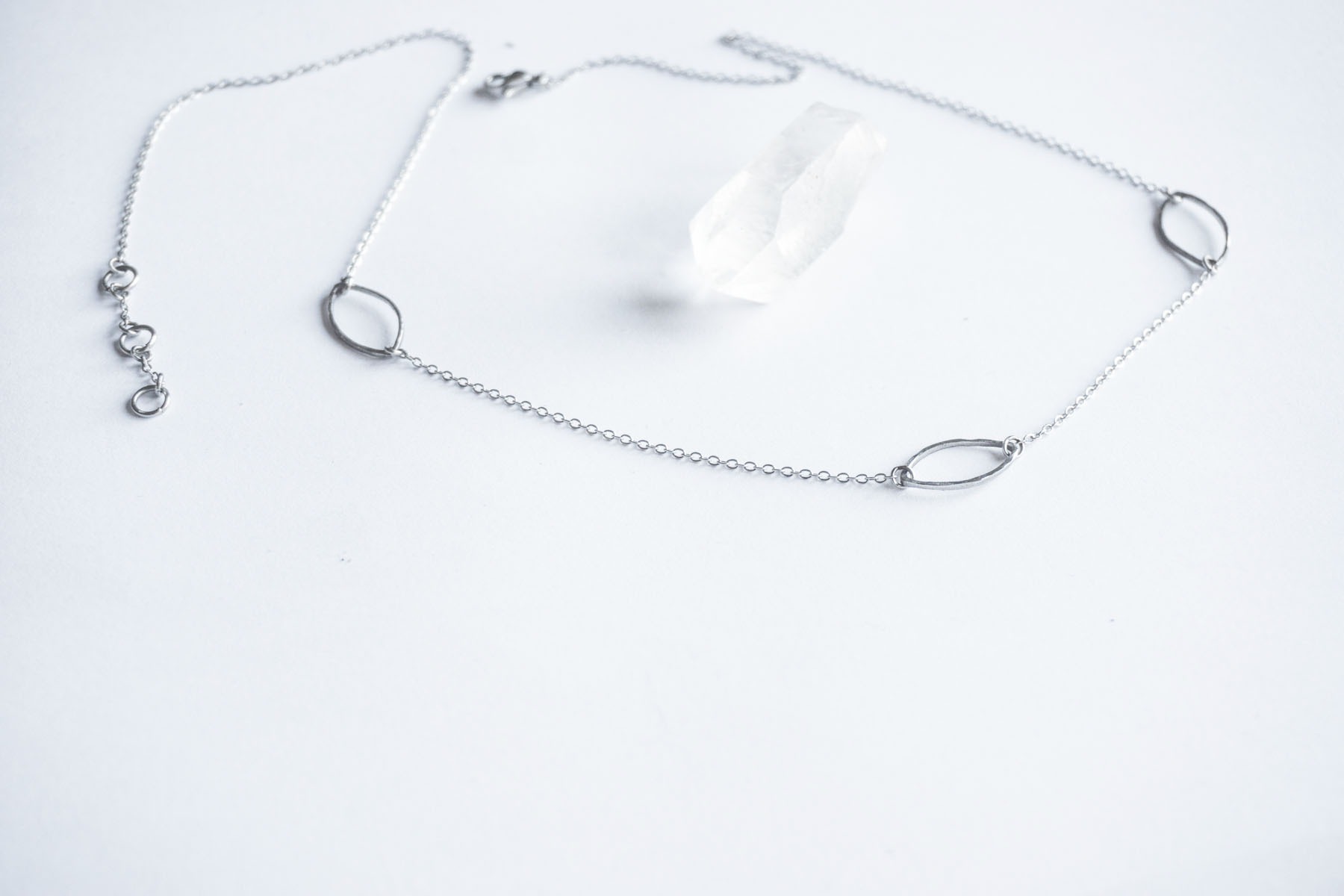 Nepravidelný řetízek s motivem drobných lístků.