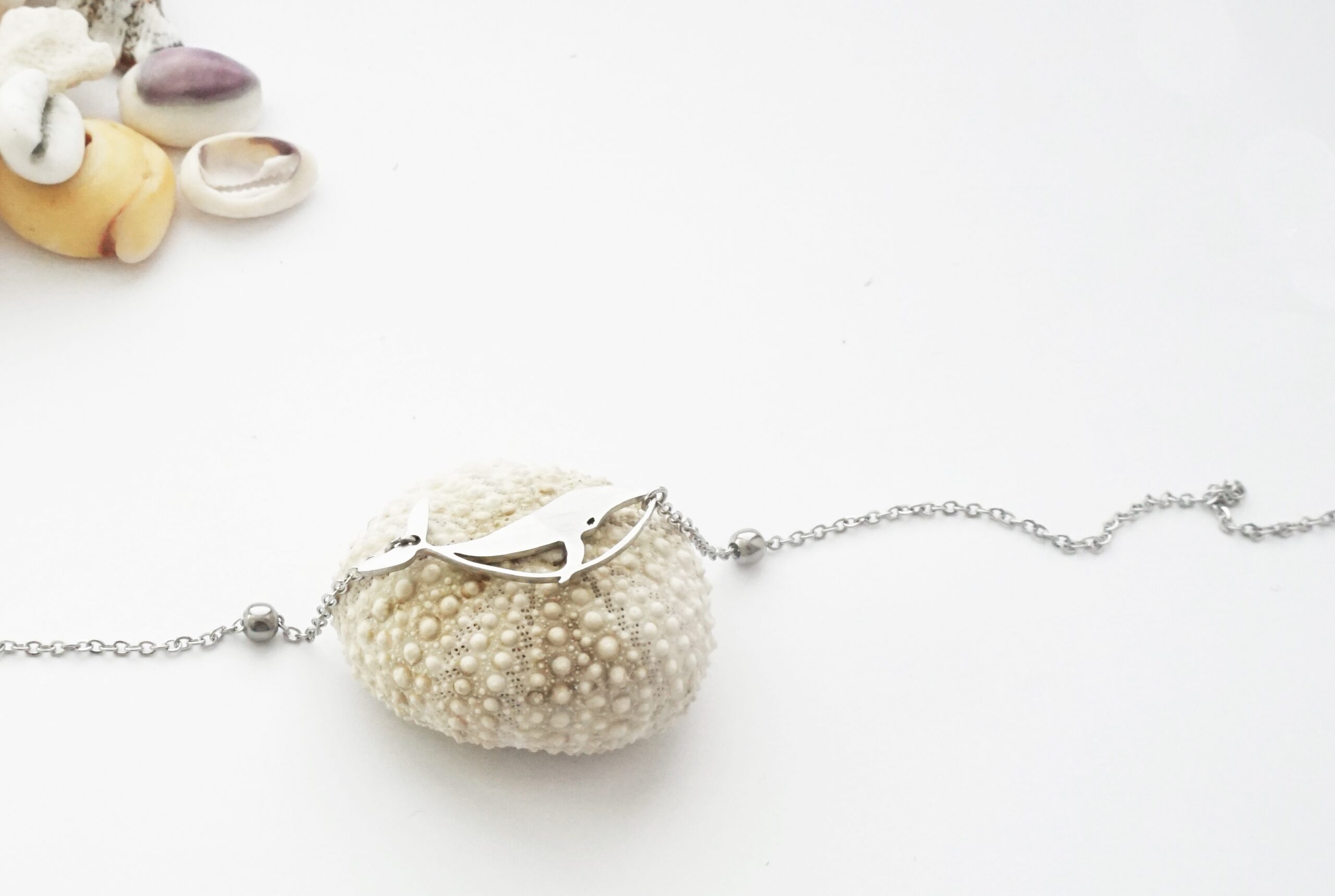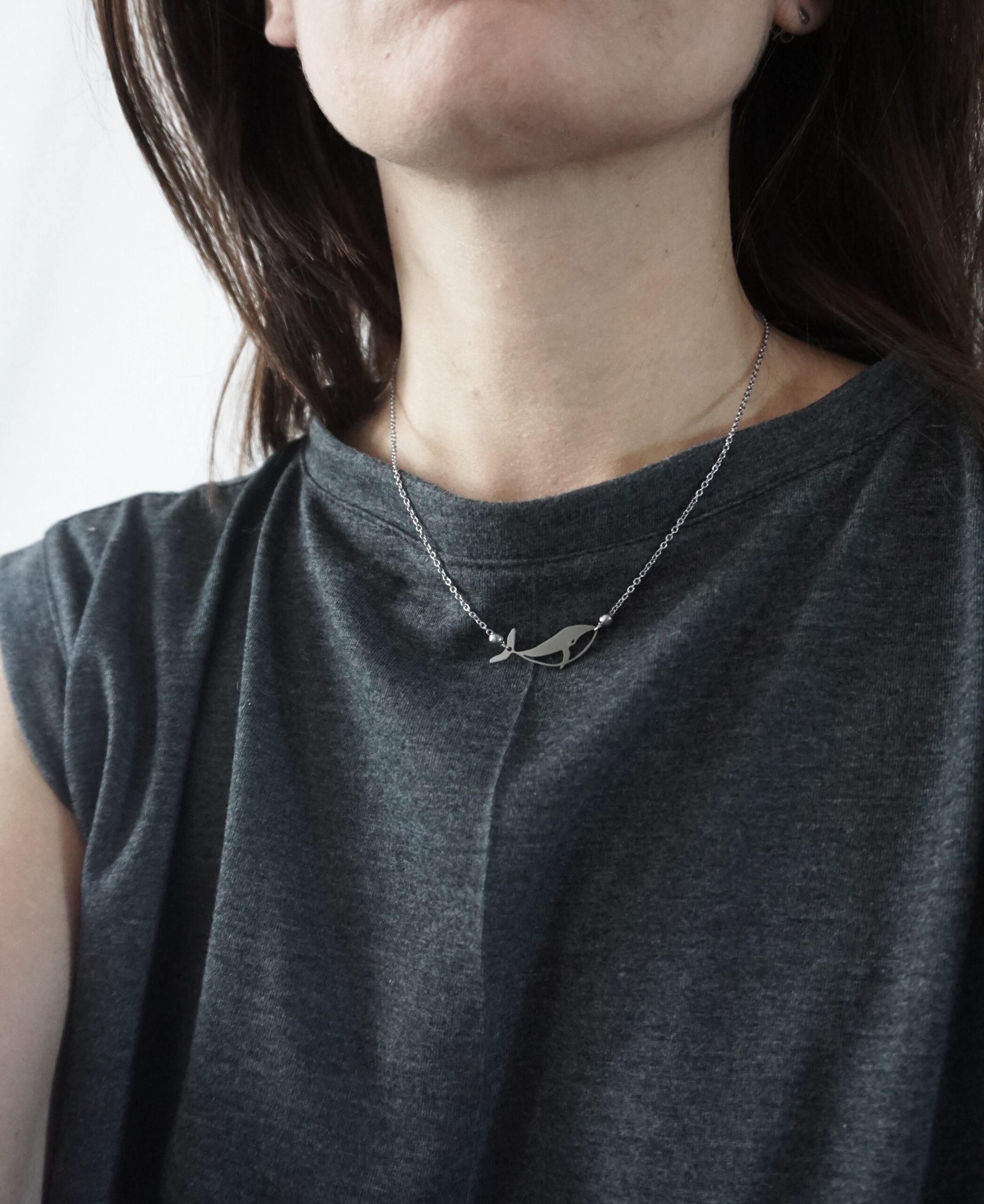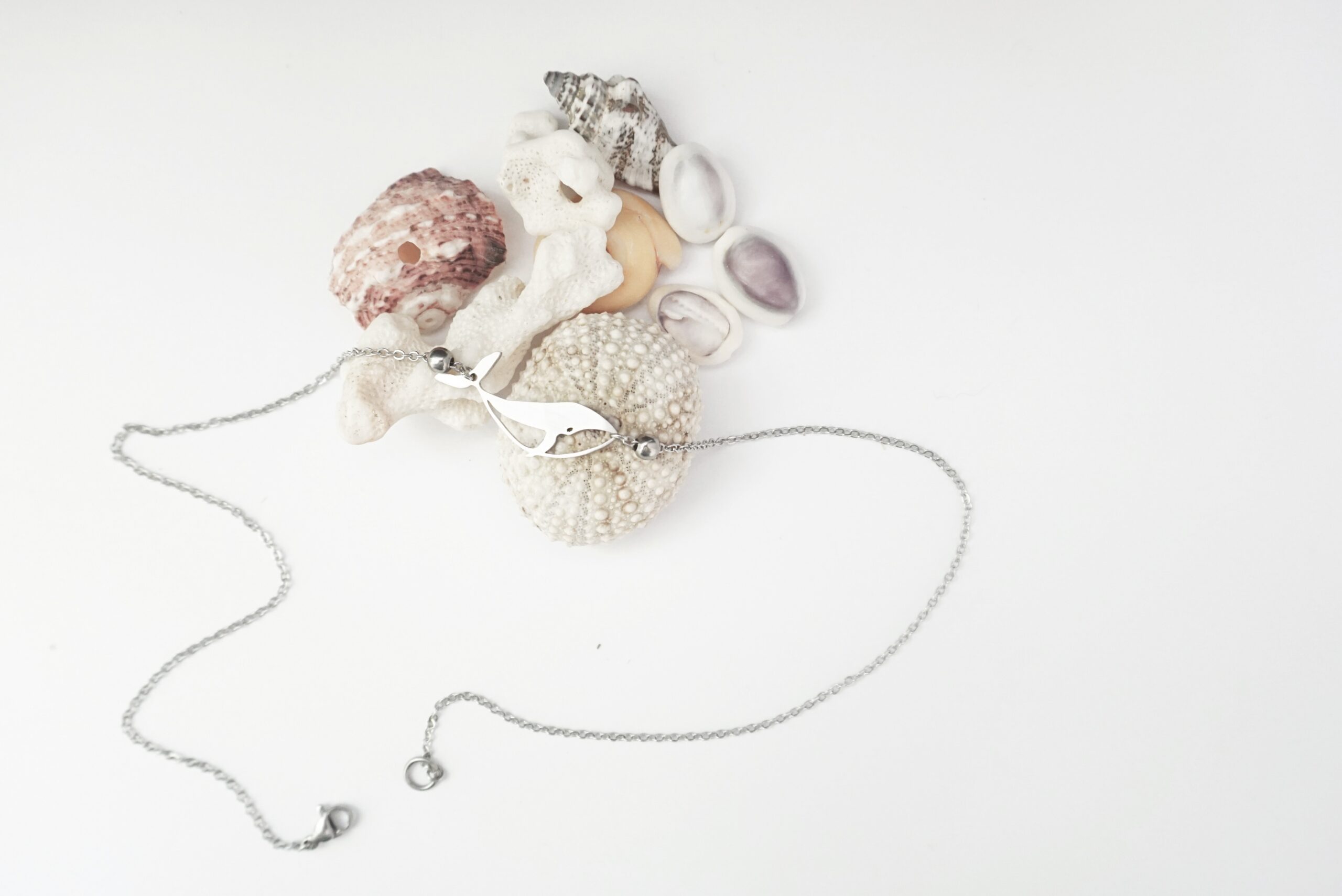 Řetízek velryba je vyrobený z broušené nerezové oceli. Doplněn nerezovými korálky, délka je cca 40- 46 cm (na konci jsou upevněné tři kroužky, pro lepší volbu velikosti). Nerezová ocel je materiál, který se vyznačuje hlavně svou pevností, stálostí a houževnatostí. Její hlavní výhoda však je, že se jedná o antialergenní materiál, proto se nemusíte bát podráždění kůže nebo alergických reakcí.